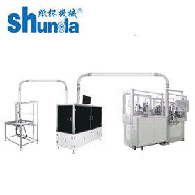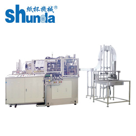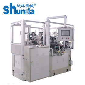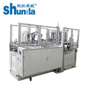 SMD-90智能中速紙杯成型機具備高性能、高效益、高品質的優點;整體鋼板機身與淋油式的潤滑系統保證了設備長期正常穩定運轉;先進的高精度圓柱凸輪驅動搭配齒輪傳動使每個工位成型精準無誤;伺服跟蹤送底紙鎖定了杯底紙的尺寸,有效的節省了原材料;杯底采用2道(瑞士Leister )無焰加熱;生產中每個環節由(日本松下)光電檢測并報告;人機界面PLC系統控制著整機長時間的穩定運轉;自動計數集杯臺統籌合理的設定